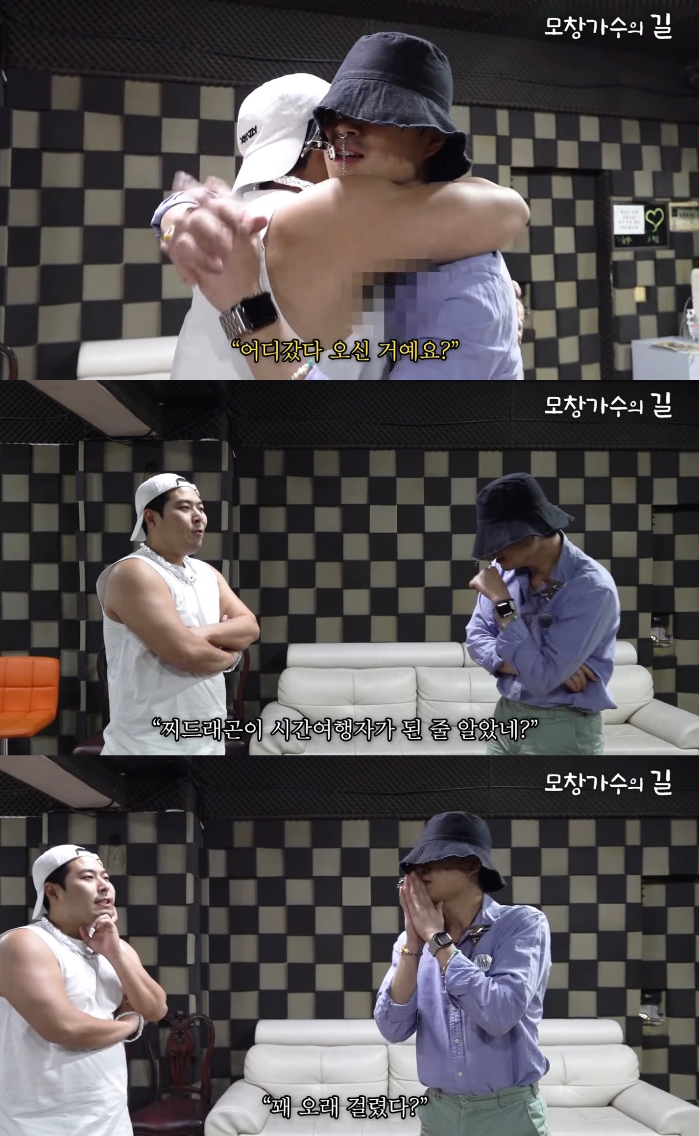 이날 김해준은 찌디와 포옹을 하며 오랜만에 돌아왔다는 듯이 반가움을 표했고, 찌디는 "세계일주 하고 왔다"며 자신이 사라졌다 돌아왔음을 강조했다.