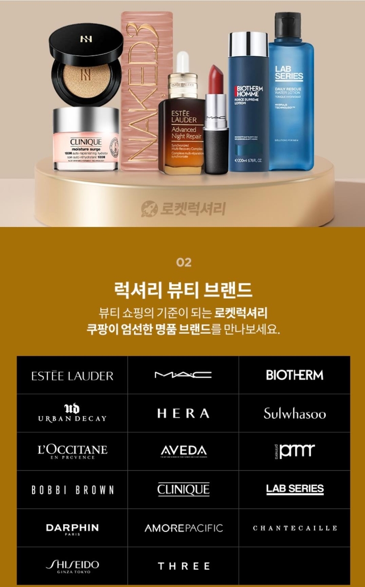 로켓럭셔리에는 에스티로더, 맥, 바비브라운, 록시땅, 아베다 등 고급 브랜드가 입점했다.