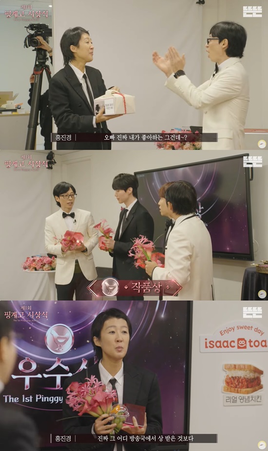 온라인을 뜨겁게 달궜던 제1회 핑계고 시상식이 지상파 방송국이 외면한 지석진과 홍진경을 모두 품으면서 시상식에 대한 호평이 이어지고 있다.