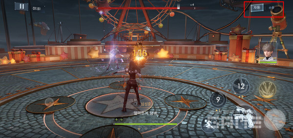전투 중에 공격을 멈춘다면 이용자가 수동으로 무언가를 터치했을 가능성이 크다. 다시 우측 상단의 자동/수동 버튼 중에서 '자동'을 눌러주면 된다.