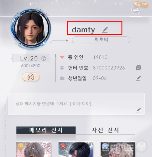 닉네임이 아니라 이름이 나와서 당황했다면? 자기 정보를 입력하는 칸에 닉네임과 이름을 입력하는데 정작 게임에는 이름이 나타난다. 캐릭터 정보 화면에 들어가서 이름을 닉네임으로 바꾸면 된다.