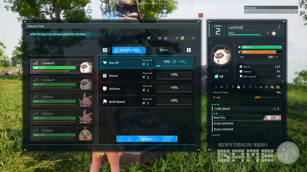 이렇게 이해하면 쉽다. 이 게임은 포켓몬처럼 고급 팰을 모으는 것이 목적인 게임이다. 그들이 지낼 침대를 마련해주고, 먹이도 주고 이렇게 키우면서 고급 팰을 모으는 것을 우선 순위로 삼으면 된다.