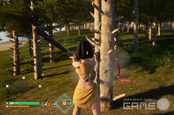 먼저 떨어진 가지나 작은 돌을 주우며, 나무와 돌을 모으자. 큰 나무나 암석을 맨 손으로 두들겨도 나무와 돌을 채집할 수 있다. 작업대를 만들고 도끼와 곡괭이를 제작해 채집 효율을 높일 수 있다. 나무는 도끼로 찍어야 효율이 좋고, 돌은 곡괭이를 사용해야 효율이 좋다.