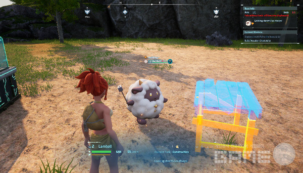 레벨이 오르면 무기와 '팰 스피어'를 만든 뒤 팰의 힘을 빼고 포획해 보자. 팰은 함께 싸울 동료가 되어 주며, 거점에 풀어놓으면 노동력으로 쓸 수 있다.