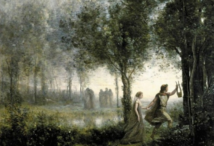 등불을 든 채 에우리디케 손을 잡고 지하 세계를 빠져나오는 장면을 프랑스 화가, 장 바티스트 카미유 코로(1796~1875)가 아름답게 상상해 냈다. 현실인 듯, 가상인 듯 신비롭게 묘사한 숲의 정취는 지하 세계임을 잊게 만든다.