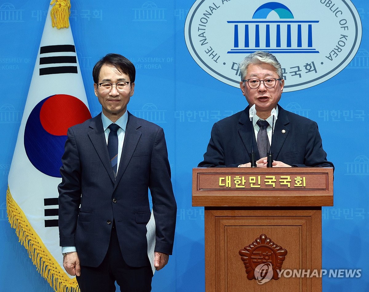 (서울=연합뉴스) 한혜원 기자 = 더불어민주당 탈당파로 개혁신당에 합류한 3선 이원욱(경기 화성을) 의원과 재선 조응천(경기 남양주갑) 의원이 13일 기존 지역구에 개혁신당 후보로 출마하겠다고 선언했다.