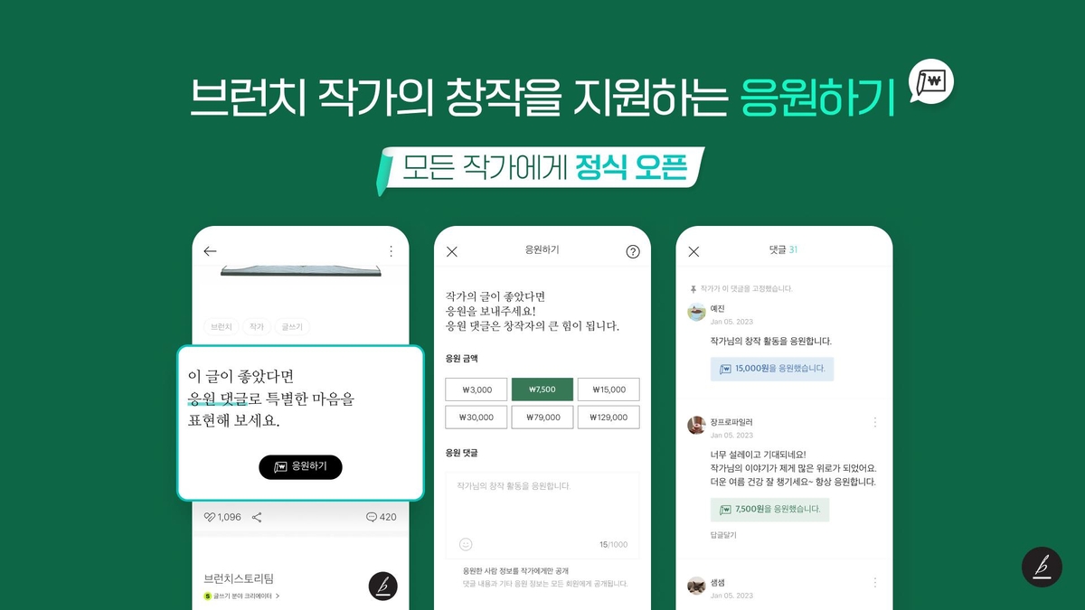 카카오 브런치스토리 '응원하기' 출시…모든 작가 후원 가능