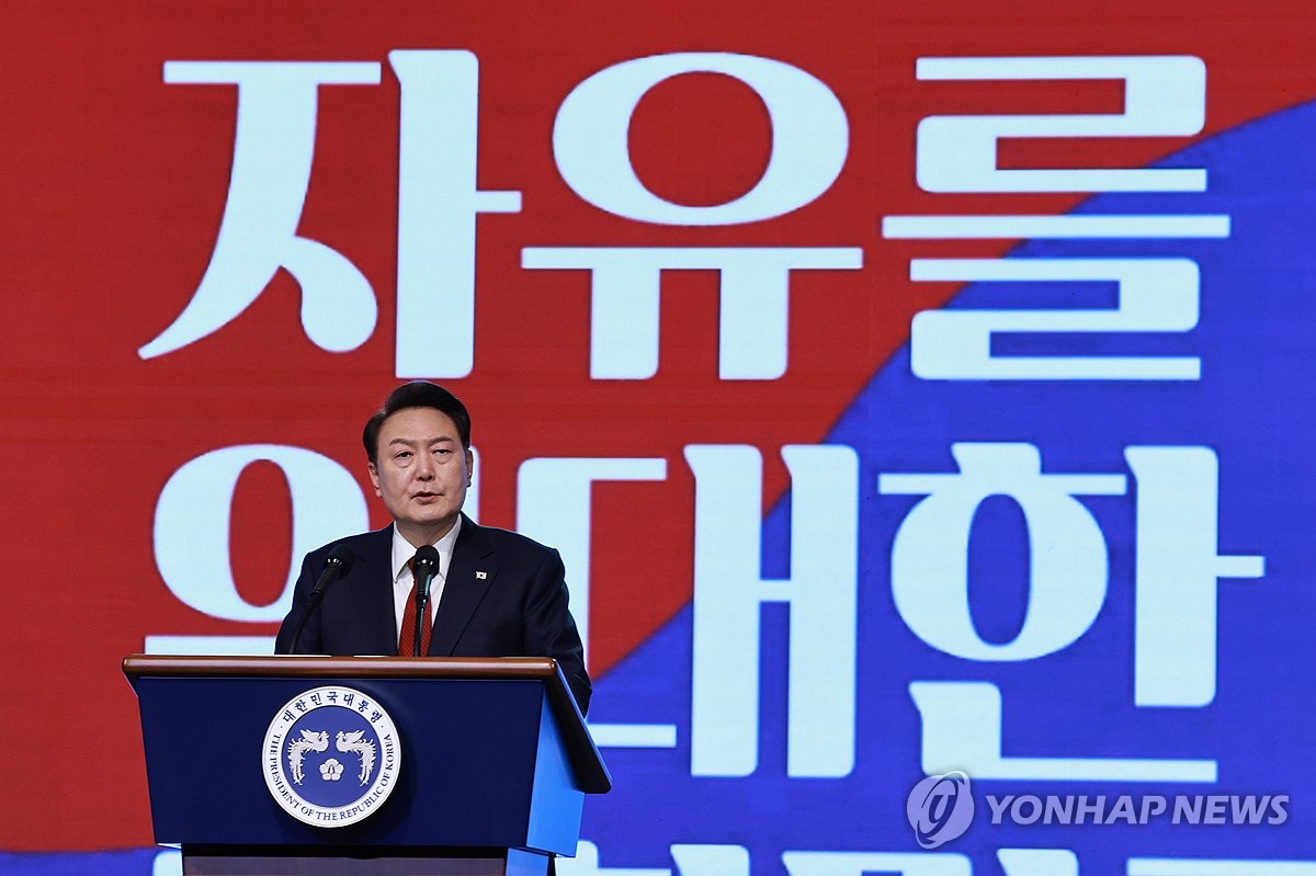 윤 대통령은 그러면서 "이제 우리는 모든 국민이 주인인 자유로운 통일 한반도를 향해 나아가야 한다"고 말했다.