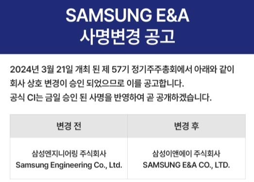 삼성엔지니어링은 21일 서울 강동구 상일동 본사에서 제57기 정기주주총회를 열어 삼성E&A로 사명 변경을 확정했다.