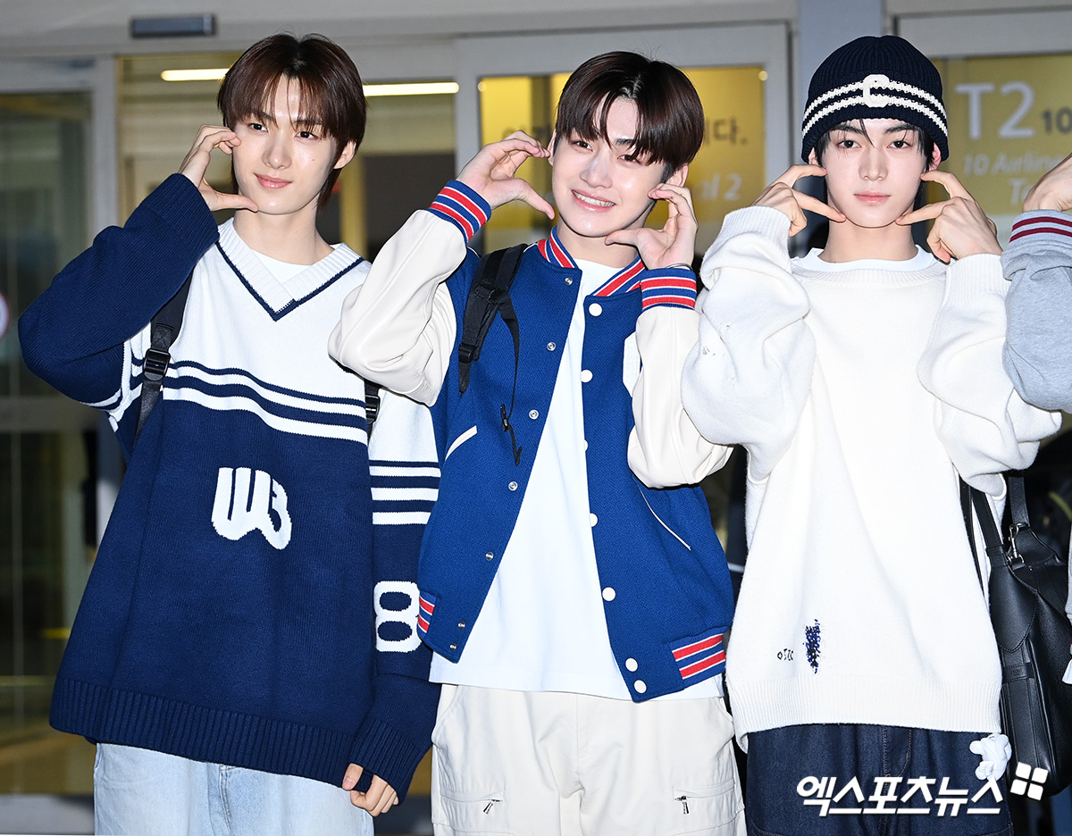 연예>한국 연예투어스 영재-지훈-한진 '볼하트 3종 세트'[엑's HD포토]엑스포츠뉴스입력 0 29일 오전 그룹 투어스(TWS)가 해외일정 참석차 인천국제공항을 통해 홍콩으로 출국했다. 투어스 영재, 지훈, 한진이 출국장으로 향하고 있다.