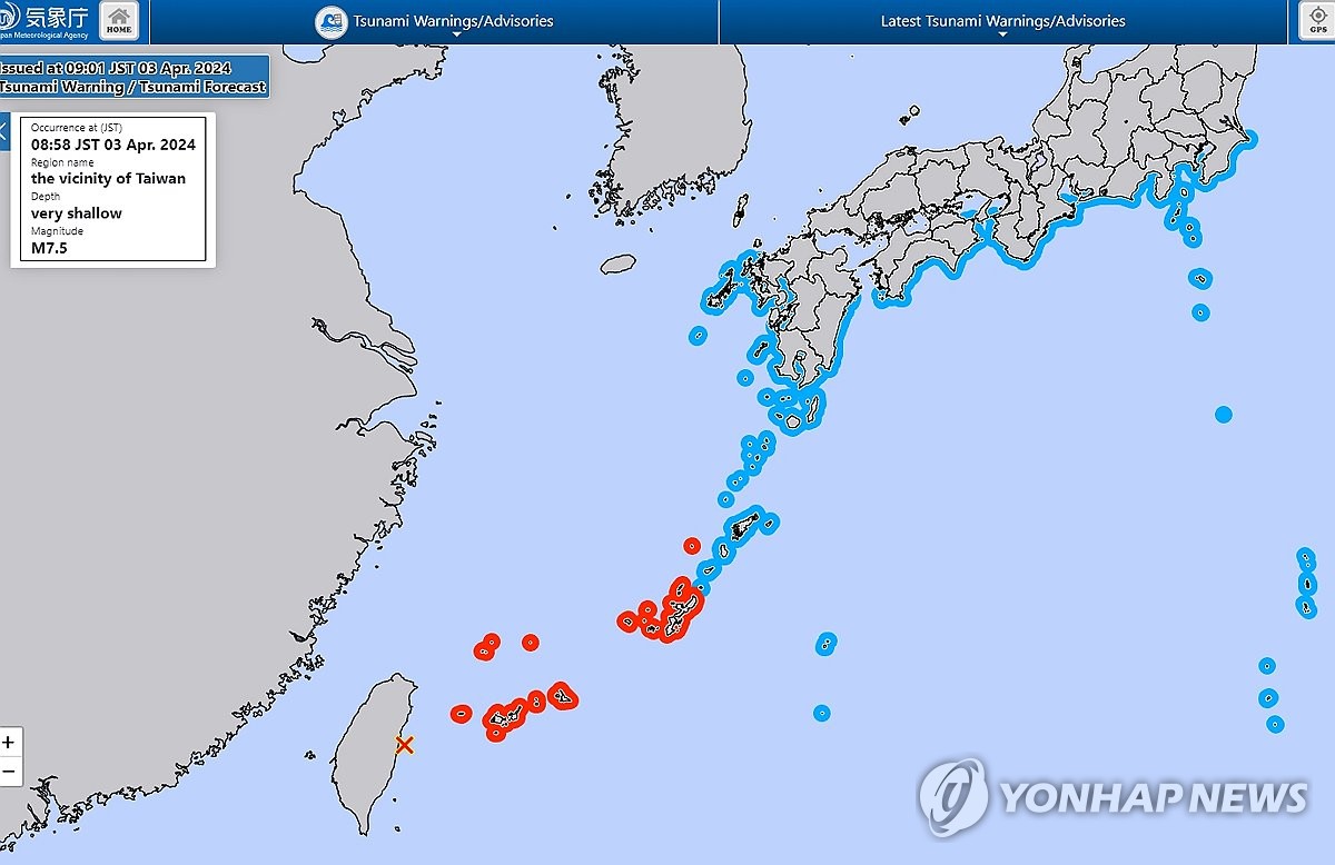 이 영향으로 대만은 물론 일본 오키나와와 중국 및 필리핀 해안 지역에도 쓰나미 경보가 발령됐다.