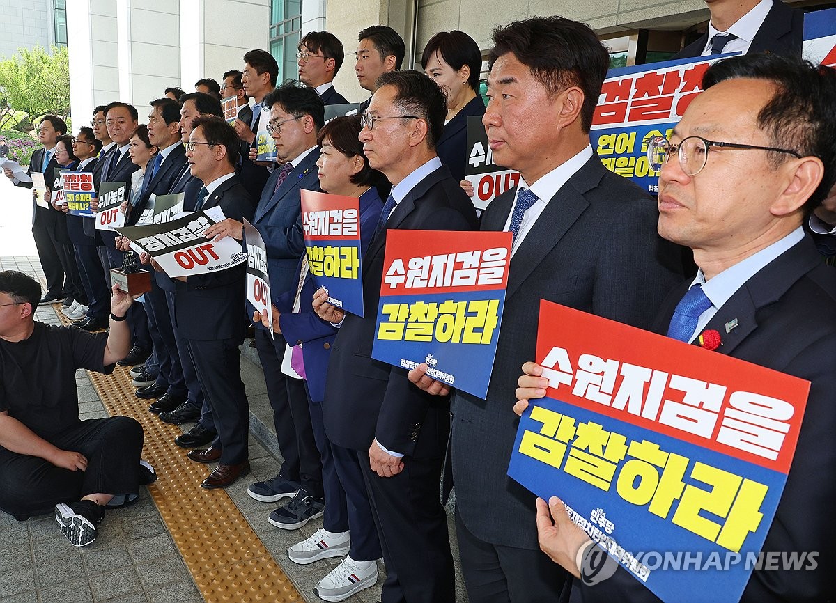 민주당 검찰독재정치탄압대책위원회 박찬대 위원장, 김지호 부위원장, 김승원 당 법률위원장, 정성호·김민석 의원과 김문수·양문석 당선인 등은 수원지검 앞 기자회견에서 "대검이 정상적인 조직이라면 야당 대표를 상대로 한 진술 조작 모의 의혹을 그냥 유야무야 덮어서는 안 된다"며 이같이 촉구했다.