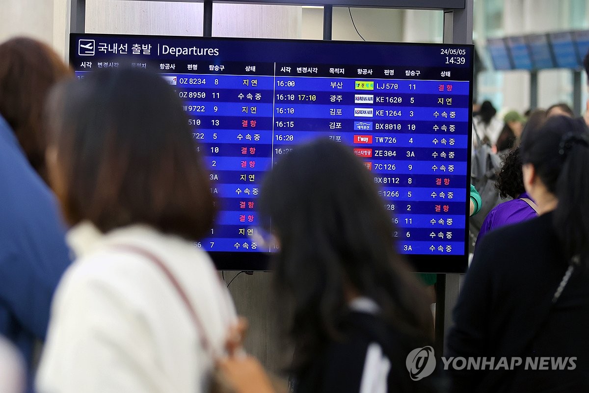 (제주=연합뉴스) 전지혜 기자 = 어린이날인 5일 제주도에 강풍과 함께 많은 비가 내리면서 항공기 운항에 차질이 빚어지고, 행인이 고립되거나 전봇대·나무가 쓰러졌다는 신고가 잇따랐다.
