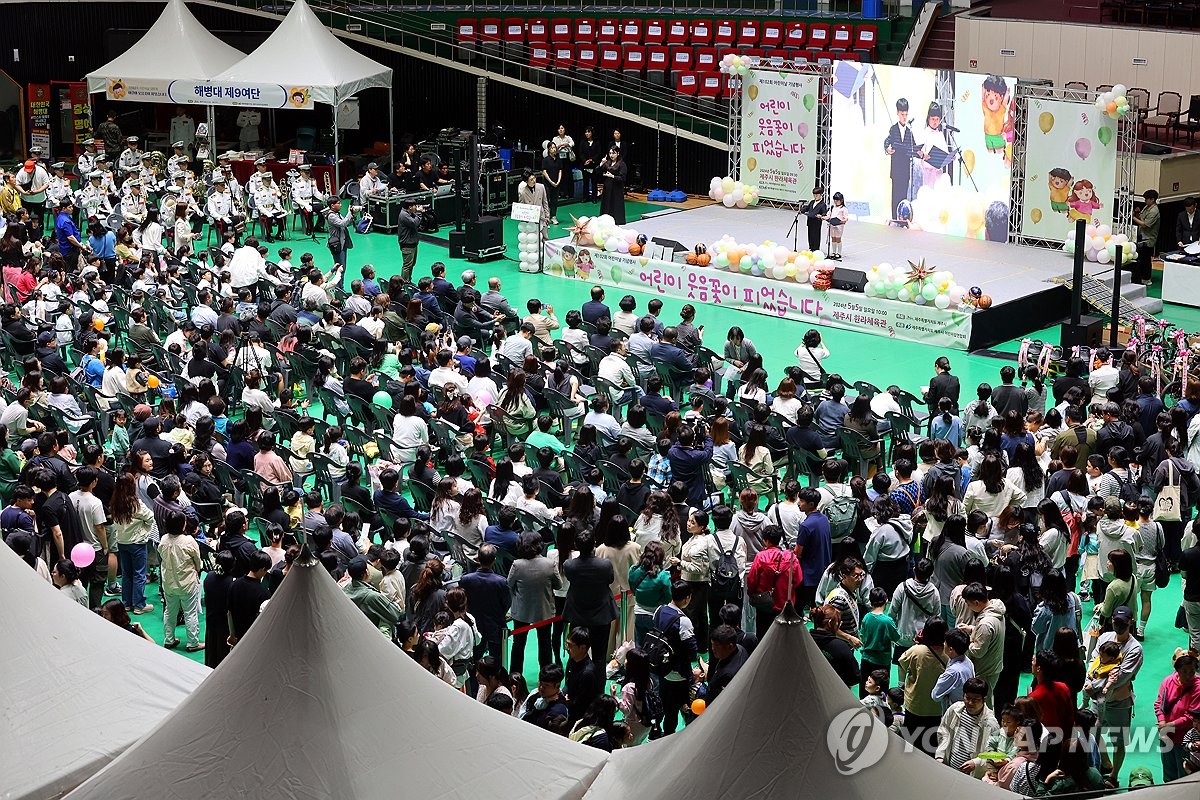 제주시에서는 한라체육관, 서귀포시에서는 서귀포올림픽기념국민생활관 실내에서 각각 제102회 어린이날 기념행사가 진행됐다.