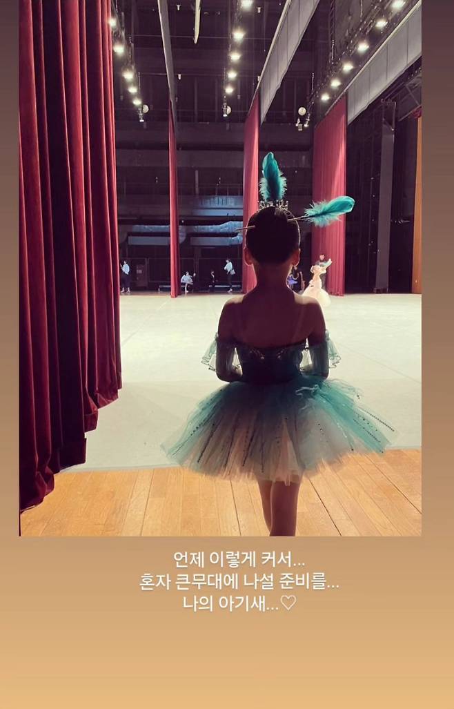 소유진의 딸 세은은 발레복을 입고 무대에 나설 준비를 하고 있다.