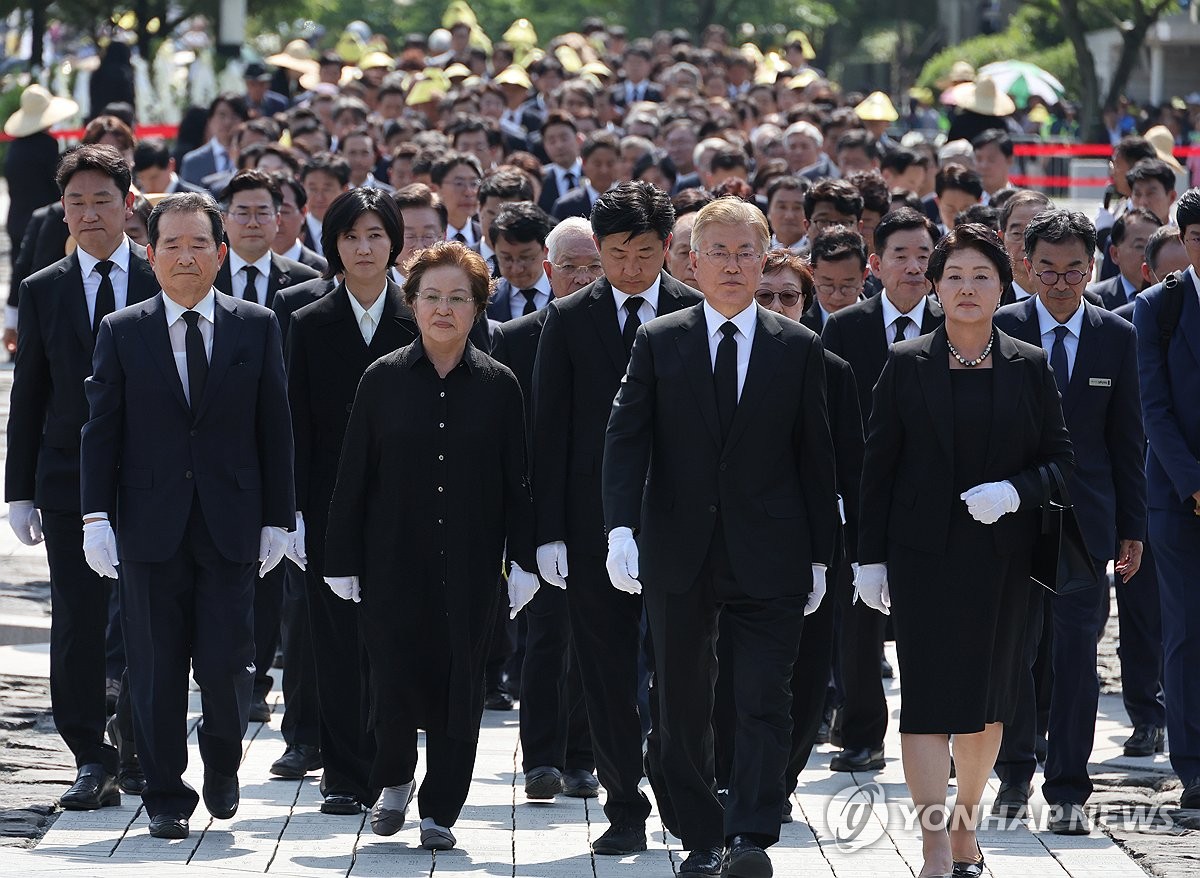 이 대표도 추도식 후 취재진과 만나 "문 전 대통령과 조 대표, 김 전 지사와 상당히 긴 시간 환담을 했다"며 "여러 말씀이 있었지만, 우리 사회가 나아가야 할 길, 현 시국의 어려움에 대한 걱정과 우려가 있었다"고 말했다.