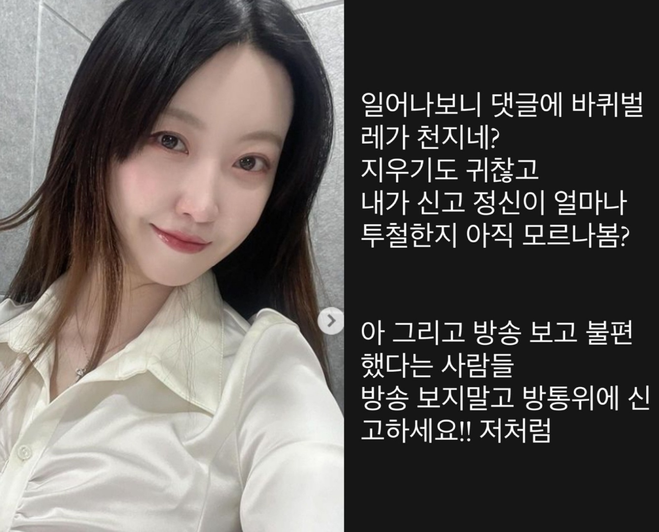 또 "저에게 알맞는 조언과 충고를 해주신 시청자분께 바퀴벌레라는 용어를 써서 무례를 범한 점에 대해서도 진심으로 사과드린다"라며 고개를 숙였다.
