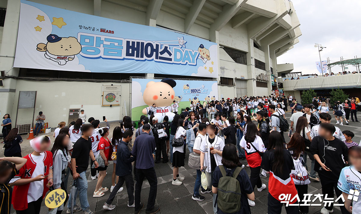 '망그러진 곰' 등장에 구름관중 몰렸다!…KIA-두산 잠실대전 2만3750석 '완판' [잠실 현장]