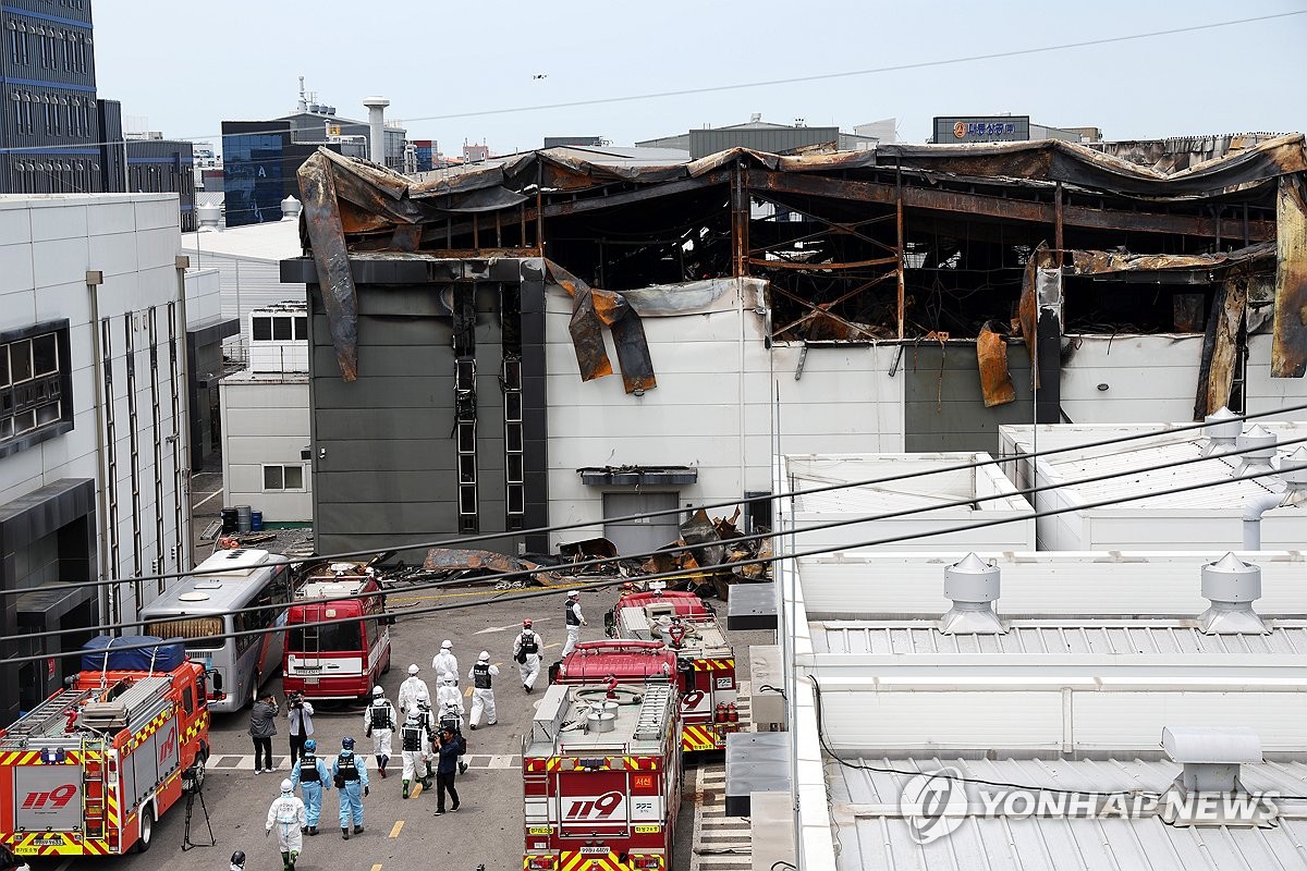 사고 현장에서는 전날 낮 12시부터 오후 4시 10분까지 경찰, 국립과학수사연구원, 고용노동부, 소방청 등 9개 기관 약 40여명이 합동감식을 했다. 관계 당국은 감식 내용을 분석해 화재 원인과 법 위반 사항 등을 확인할 방침이다.