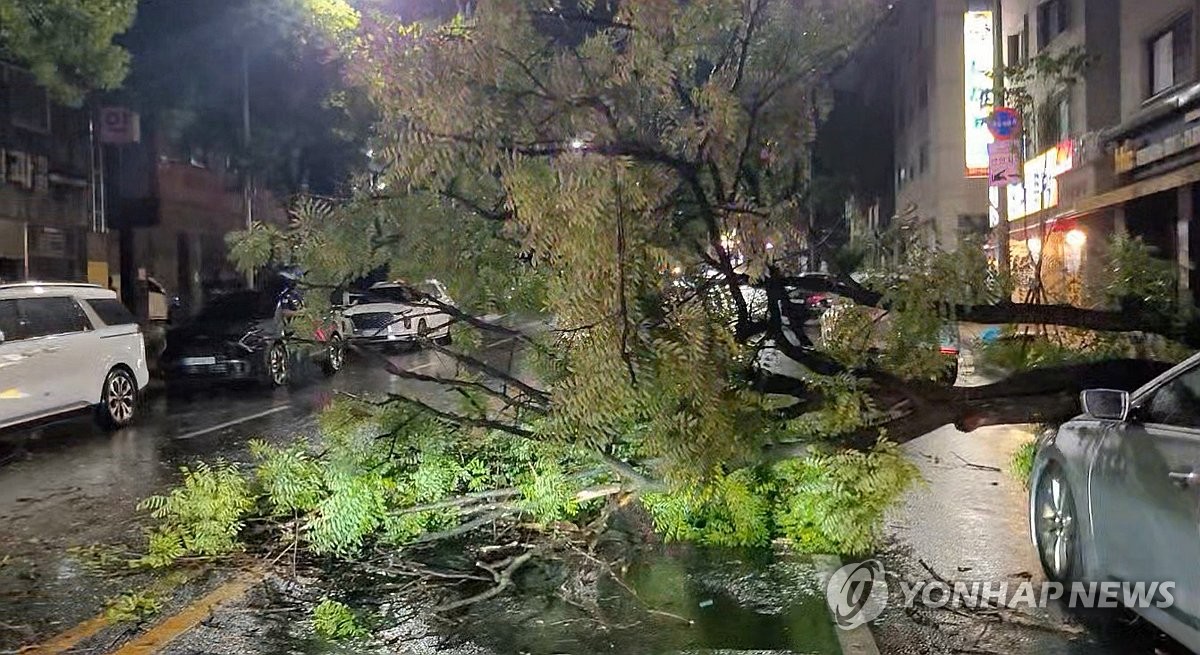 이날 오전 7시 37분께 경남 창원시 월영동에서도 나무가 쓰러지며 전선을 건드려 992가구가 정전됐다가 3시간 40여분 만에 복구됐다.