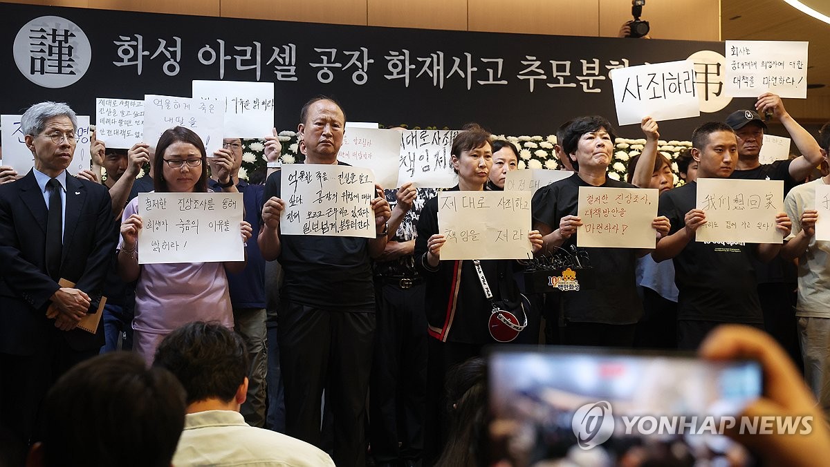 한 유족은 "아리셀에 1년 넘게 근무했는데 사고 당일까지도 그렇게 폭발할 수 있다는 점을 몰랐다"며 분통을 터뜨렸다.