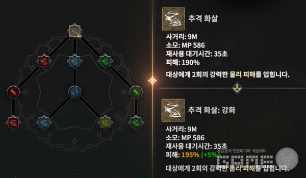 궁수를 마음속으로 정했다면 무기 특성에 대해 알아둘 필요가 있다. 각각의 무기들마다 레벨이 필요하다. 무기를 장착해서 여러 번 사용하면 해당 무기의 숙련도가 올라가고 레벨이 쌓인다. 특성 포인트가 추가된다. 35레벨에는 4개의 스킬만 사용할 수 있고, 65레벨에는 7개의 스킬을 사용할 수 있게 된다.