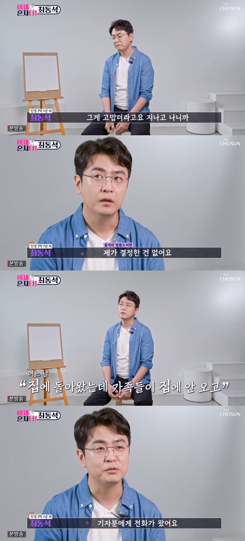 이어 최동석은 이혼 과정에 대해 "제가 결정한 건 없다"고 강조했다. 특히 그는 "기사를 보고 알았다. 어느날 집에 돌아왔는데 가족들이 돌아오지 않았고 저는 아이들을 찾으러 서울에 왔다"며 "부모님 집에서 잠을 잤는데 기자들에게 전화가 왔다. 기사가 났는데 알고 계시냐고 하더라. 그래서 알게 됐다"고 충격 고백을 했다.