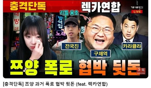 조회수를 올리기 위해 이슈몰이를 하는 이른바 '레커 연합' 유튜버들이 구독자 1천30만명을 보유한 먹방 유튜버 쯔양(본명 박정원)의 과거를 폭로하지 않는 조건으로 돈을 갈취했다는 의혹이 제기되면서다.
