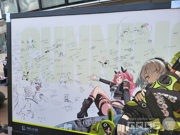 그렇기에 현장은 게임 내 도시인 뉴에리두를 컨셉으로 간단한 체험형 프로그램 위주로 꾸며져 있었다. 우측 오픈이라고 써진 다리를 건너 섬으로 입장하게 되면 방문객들이 남기고 간 여러 그림과 문구를 확인할 수 있다.