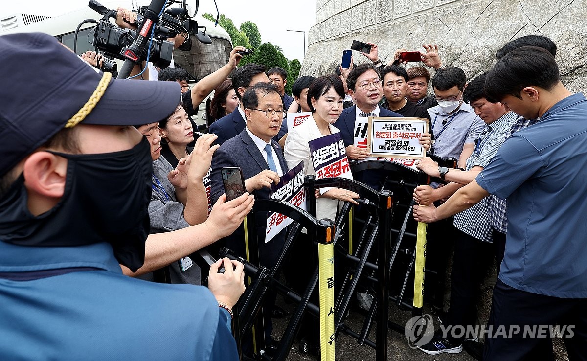 노 원내대변인은 이에 대해 "청문회를 의결했으니 증인출석 요구서를 전달하는 것이나, 요구서 수령을 거부하니 직접 대통령실에 찾아가 전달하는 것은 당연하다"며 "문제는 요구서 수령을 거부하다 못해 전달을 방해하는 것"이라고 강조했다.