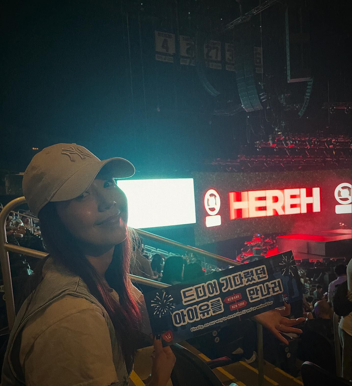 '뉴욕댁' 이진, 아이유 콘서트 찾았다…손가락 하트로 후배 사랑 인증