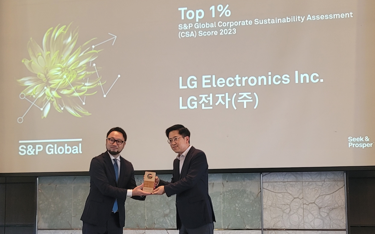 19일 LG전자 뉴스룸에 따르면 LG전자는 지난 18일 서울 중구 더플라자 호텔에서 열린 '2023 S&P 글로벌 지속가능경영 시상식'에 수상 기업으로 참가했다.
