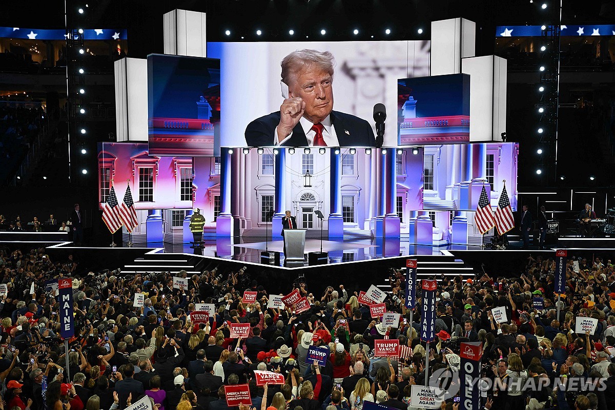 (밀워키[미 위스콘신주]=연합뉴스) 조준형 강병철 특파원 = 오는 11월 미국 대선을 앞두고 도널드 트럼프 전 대통령이 18일(현지시간) 공화당 전당대회에서 자신의 생애 3번째 대선 후보 지명을 수락했다.