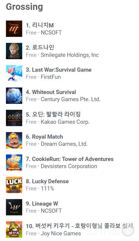 ◇ [모바일게임] 쿠키런과 버섯커 구글 매출 톱 10 재입성