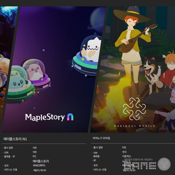 IR보고서에서 라인업으로 제시한 타이틀은 카잔, 아크레이더스, 메이플스토리N, 마비노기 모바일, 슈퍼바이브, 낙원, 프로젝트 오버킬, 빈딕투스의 8개 타이틀이다. 하나같이 출시일은 미정이다.