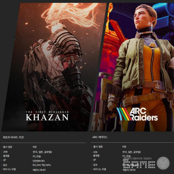 넥슨은 하드코어 액션 RPG 신작 ‘퍼스트 버서커: 카잔’, 3인칭 PvPvE1) 탈출 슈팅게임 ‘아크 레이더스’까지 글로벌 시장을 겨냥한 다채로운 신작을 준비 중이다. 또 넥슨은 8일 텐센트와 ‘더 파이널스’와 ‘아크 레이더스’의 중국 퍼블리싱 계약을 발표했다.