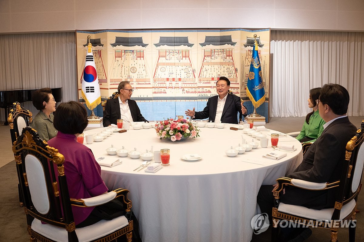 (서울=연합뉴스) 곽민서 기자 = 윤석열 대통령은 12일 이명박 전 대통령을 한남동 관저로 초청해 만찬을 함께 했다.