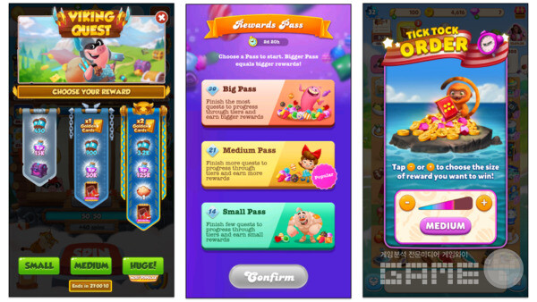 이번에는 이용자가 트래플 타운(Travel Town), 캔디 크러시 소다 사가(Candy Crush Soda Saga 및 코인 마스터(Coin Master)에서 완료 시 더 크거나 작은 보상을 선택할 수 있는 '선택 보상' 이벤트를 살펴보겠다. 여기에는 LiveOps & 업데이트 일정을 통한 인사이트가 사용됐다.