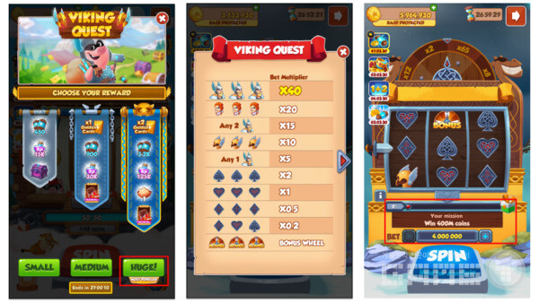 코인마스터는 비 핵심 게임플레이로 진행되는 바이킹 퀘스트(Viking Quest) 이벤트 로 '보상 선택' 메커니즘에 대한 또 다른 해석을 제공한다.