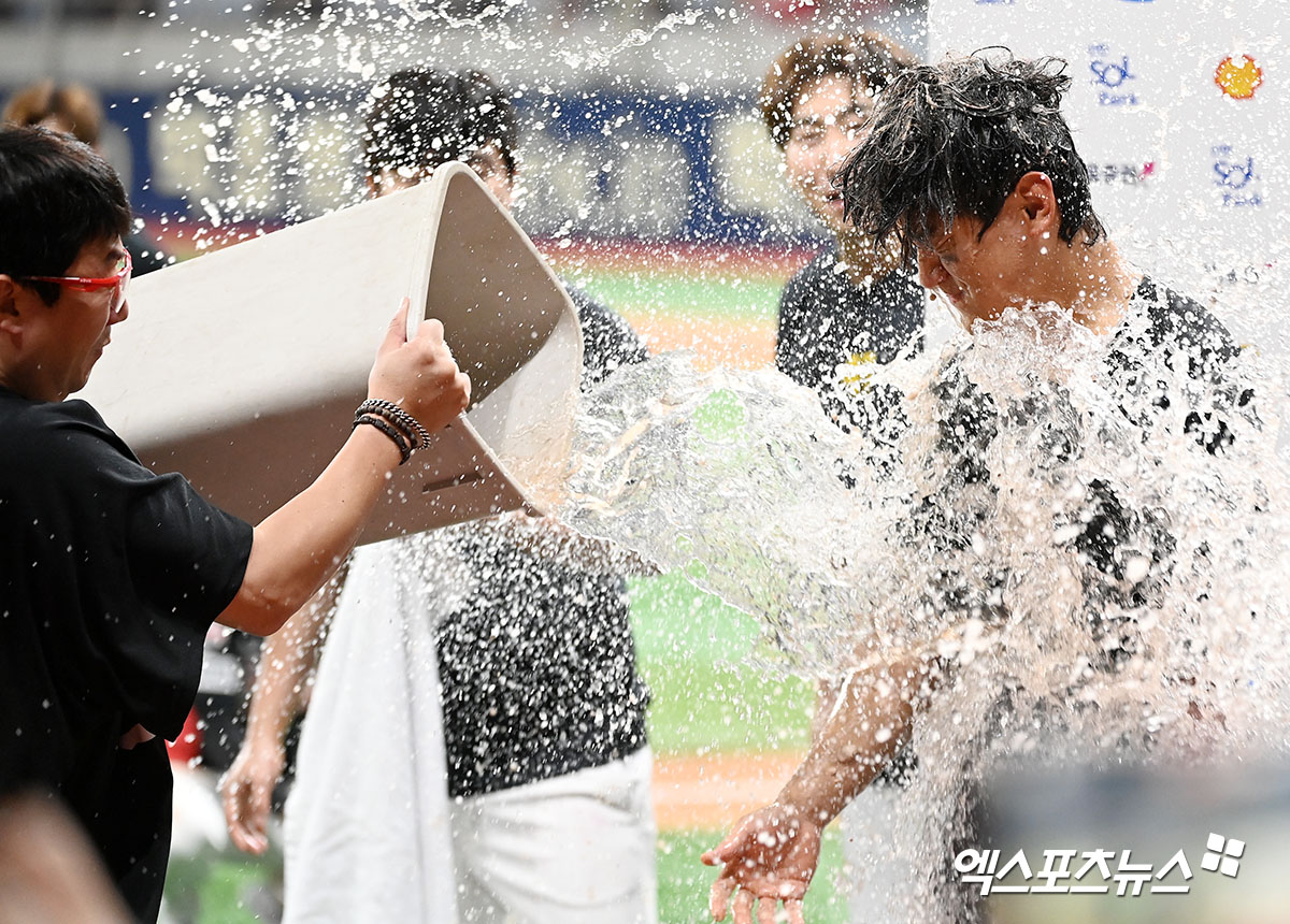 스포츠>한국 야구김도영 '동성고 출신 선배 양현종에게 받는 축하 물세례'[포토]엑스포츠뉴스입력 0 (엑스포츠뉴스 고척, 김한준 기자) 15일 오후 서울 구로구 고척스카이돔에서 열린 '2024 신한 SOL Bank KBO리그' KIA 타이거즈와 키움 히어로즈의 경기, KIA가 김태군-김도영-나성범의 홈런에 힘입어 키움에 12:1 완승을 거뒀다. 최연소-최소경기 30-30을 달성한 KIA 김도영이 동료들로부터 축하를 받고 있다.김한준 기자 kowel@xportsnews.com