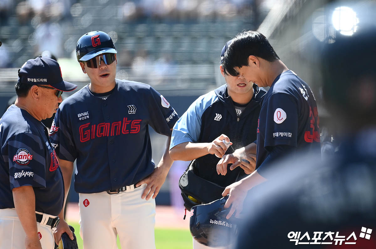 손호영은 오른손에 통증을 크게 느낀 듯 표정을 찌푸렸다. 롯데 트레이너가 급하게 그라운드로 나와 간단한 응급조치를 실시했다.