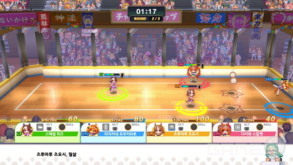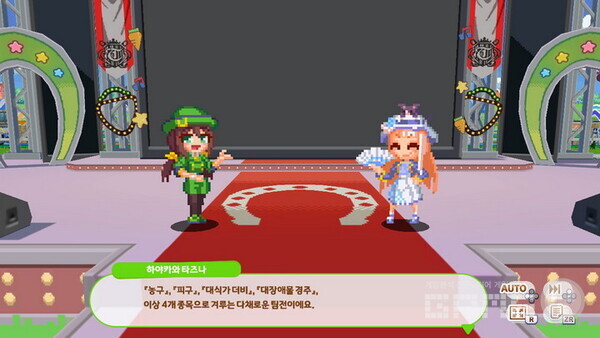 이름하여 우마무스메 열혈 우당탕탕 대감사제!’다. 열혈이라는 제목에서 알 수 있듯 이 게임은 어디선가 본 듯한 느낌이 든다. 바로 ‘열혈고교’ 시리즈 중 하나인 ‘열혈행진공 대운동회’다. 도트 그래픽과 체욱대회를 기반으로 하는 콘텐츠 등 어딘지 모르게 유사함이 느껴진다. 하지만 ‘우마무스메’ IP를 기반으로 하기 때문에 ‘열혈고교’와 같은 폭력성은 없고 건전한 스포츠를 배경으로 한 게임이다.