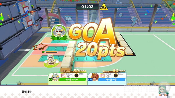 농구공 쟁탈 스테이크스는 기본적으로 농구 골대에 공을 넣는 것으로 상대의 수비를 피하며 골을 넣으면 된다. 여기에 일반 농구와는 다른 요상한 규칙들이 추가된다. 농구 골대가 2개, 3개가 되는 등 한번에 골을 성공시키면 고득점을 할 수 있다. 또한 필드에는 여러 방해요소가 등장하기도 하며 특수한 공을 통해 더 높은 점수를 얻을 수도 있다.