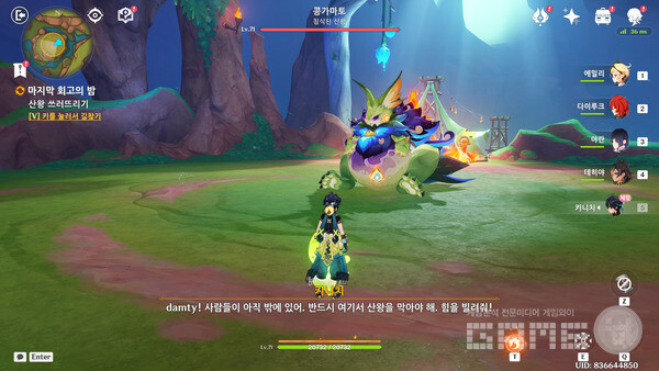 첫 번째 임무는 [길 잃은 아기 용 찾기(3)]다. 숲용으로 변신한 상태이고, T를 눌러가면서 위로 올라가면 아기 용들과 함께 키니치의 쫄병(?) 아쥬도 만나게 된다.