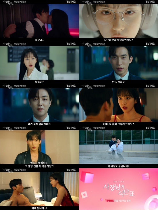 10월 3일 첫 공개되는 티빙 오리지널 시리즈 ‘사장님의 식단표’는 19금 웹소설 작가 남자연이 자신이 쓴 소설 여주인공 서연서에 빙의해 로설(로맨스 소설) 남주 강하준과 벌이는 예측불허 로맨스 판타지 드라마다.