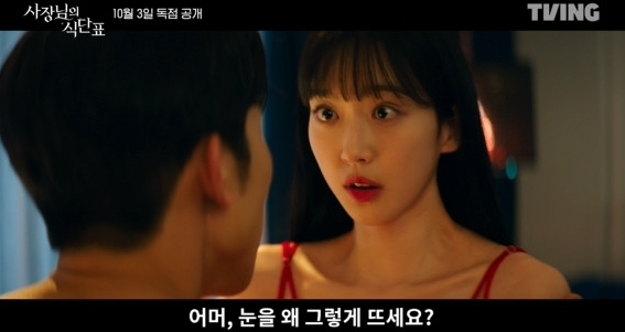 ‘사장님의 식단표’를 향한 드라마 팬들의 관심이 나날이 고조되고 있는 가운데, 26일 베일을 벗은 예고 영상은 19금 웹소설 ‘사장님의 식단표’ 속 주인공 서연서(한지현 분)와 하준(이유진)의 파격적인 모습으로 시작된다. 두 사람의 달아오른 분위기가 보는 이들에게 신선한 충격을 안기는 동시에 짜릿한 재미를 선사한다.