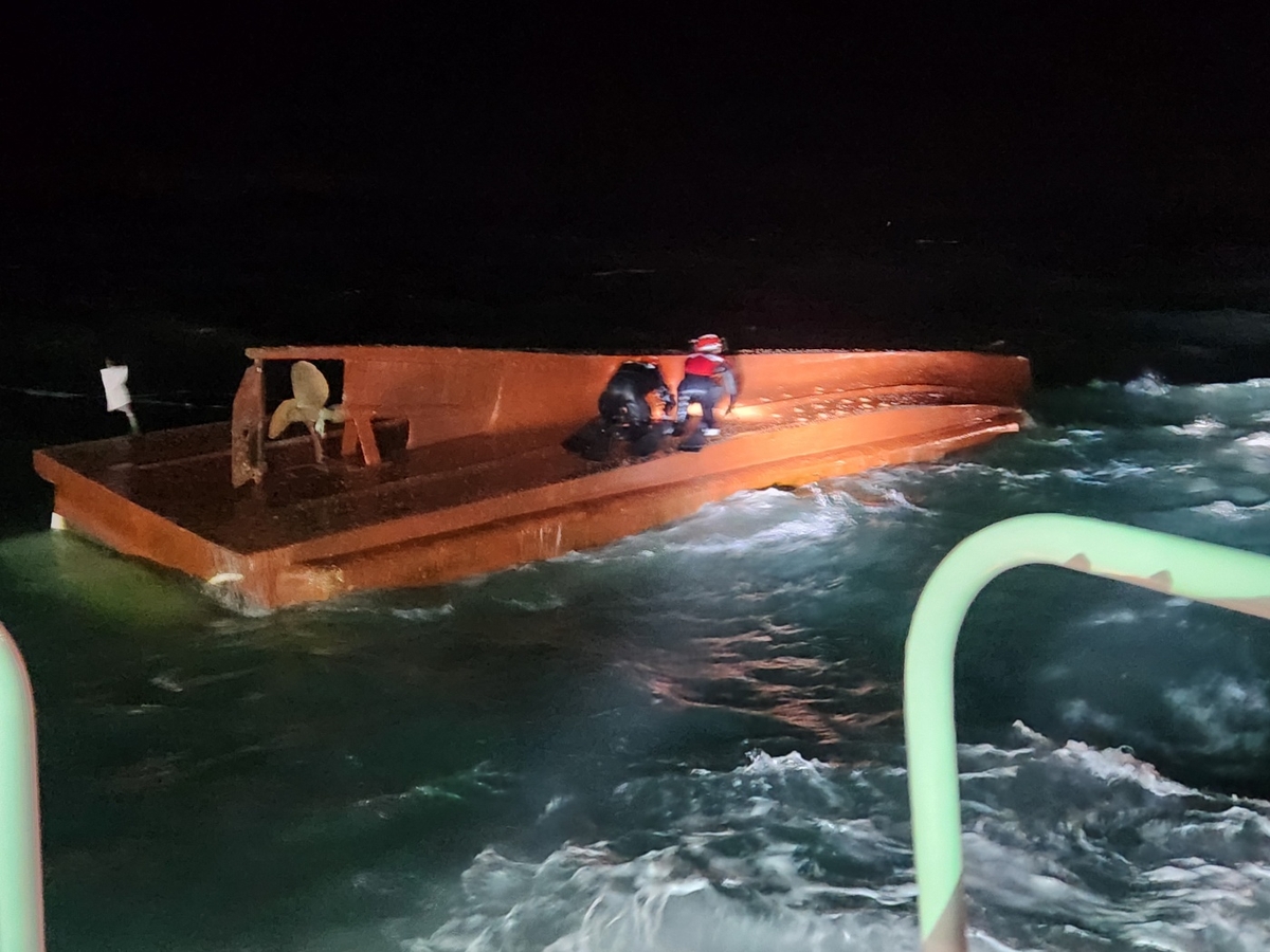 (여수=연합뉴스) 박철홍 기자 = 1일 오후 7시 20분께 전남 여수시 삼산면 소거문도 북동쪽 1.8km 해상에서 4t급 어선 A 호(승선원 4명)가 전복돼, 선원 3명은 구조됐지만 선장은 실종 상태다.