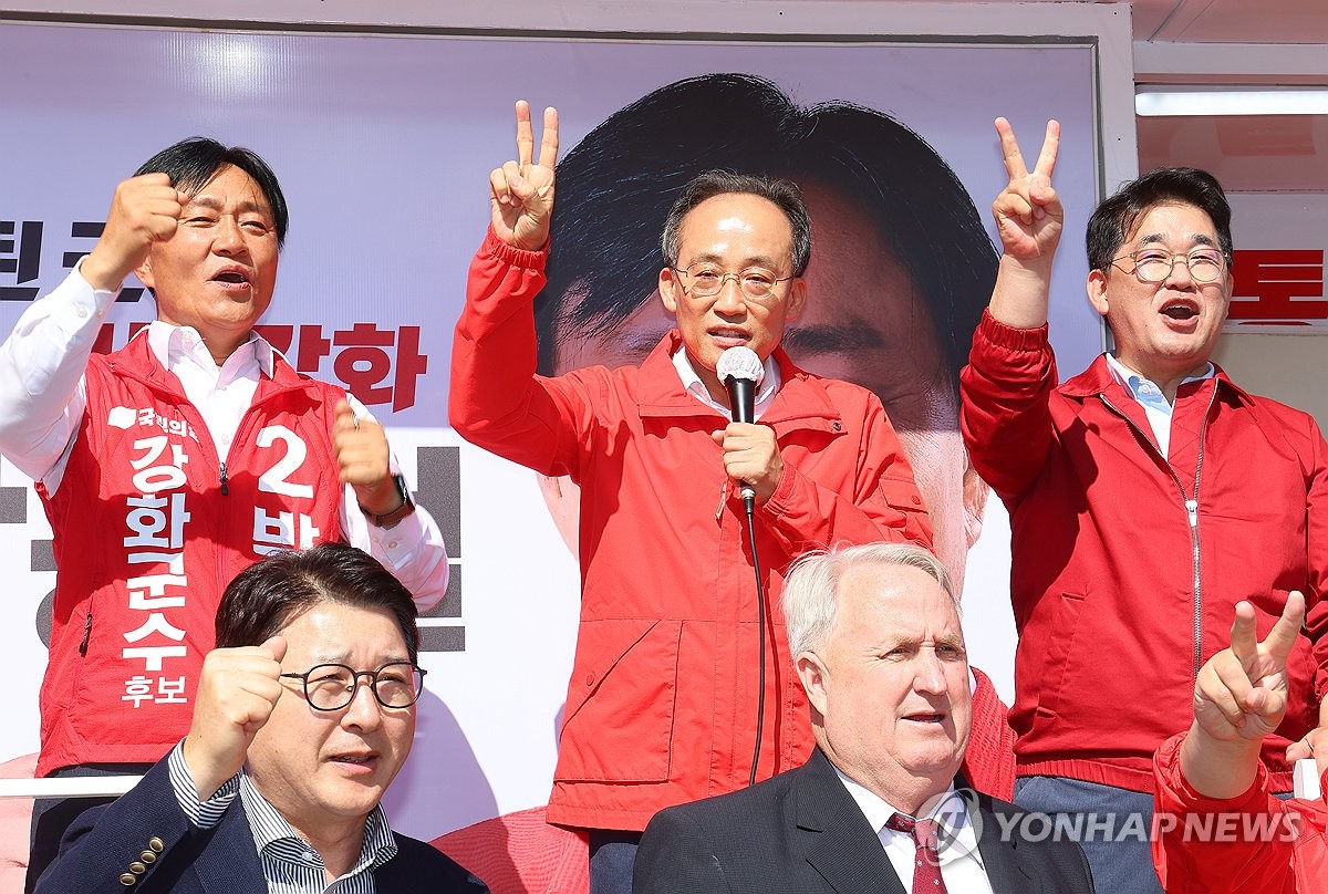 국민의힘 추경호 원내대표는 인요한 최고위원, 진종오 청년최고위원 등 지도부와 함께 이날 인천 강화를 방문, 박용철 후보 출정식에 참석해 지원 유세를 했다.