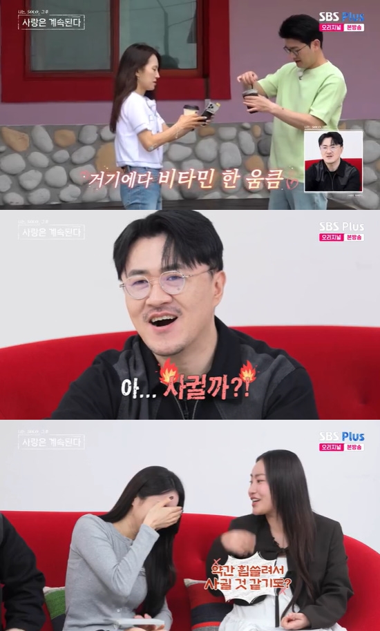 그는 "지금 둘이 안 만나면 19기 영숙 씨 나랑 사귈래요? 확 사귀어버릴까 진짜"라며 연신 호감을 드러내 웃음을 자아냈다. 이를 보던 조현아는 "비타민이 러브 버튼이었다"라며 웃음을 터트렸다.