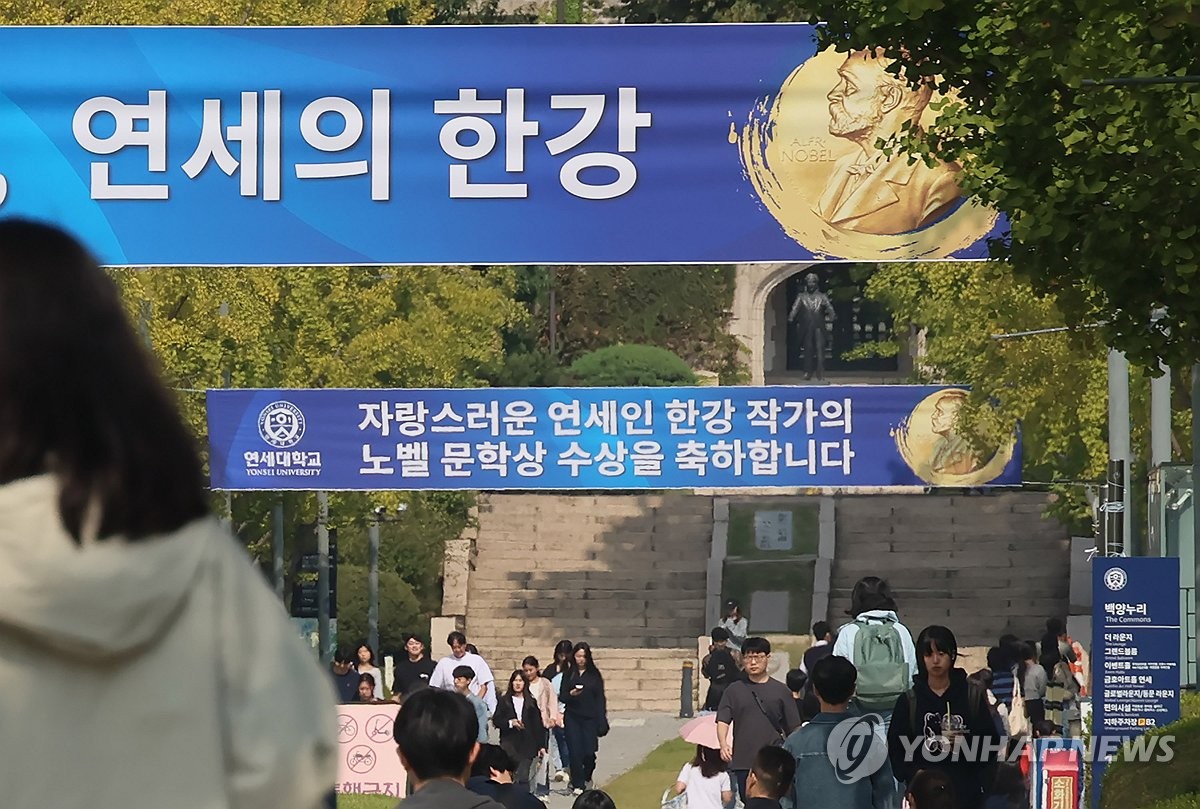 윤동섭 연세대 총장은 이날 '사랑하고 존경하는 연세 가족 여러분께'라는 제목으로 동문들에게 보낸 메일에서 "한국 최초 노벨문학상이라는 기쁜 소식은 연세인들에게도 큰 자부심"이라며 "한국 문학은 당당히 세계 무대에 우뚝 섰다"고 적었다.